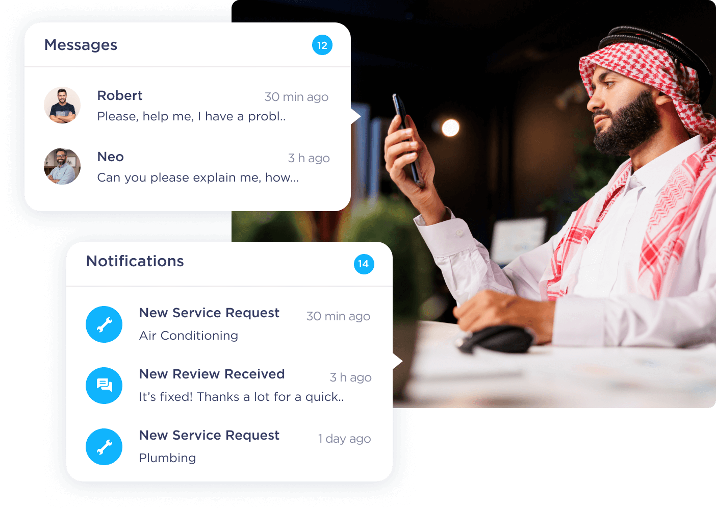 ابق فريق إدارة العقارات على اتصال مع تطبيق الهاتف المحمول الخاص بموظفينا واطلعهم عليه. سواء كان ذلك من خلال تحديث طلبات المستأجرين أو إدارة الجداول الزمنية أو الوصول إلى معلومات العقار، يضمن تطبيقنا أن موظفيك يمكنهم أداء مهامهم بكفاءة في أي مكان وفي أي وقت.